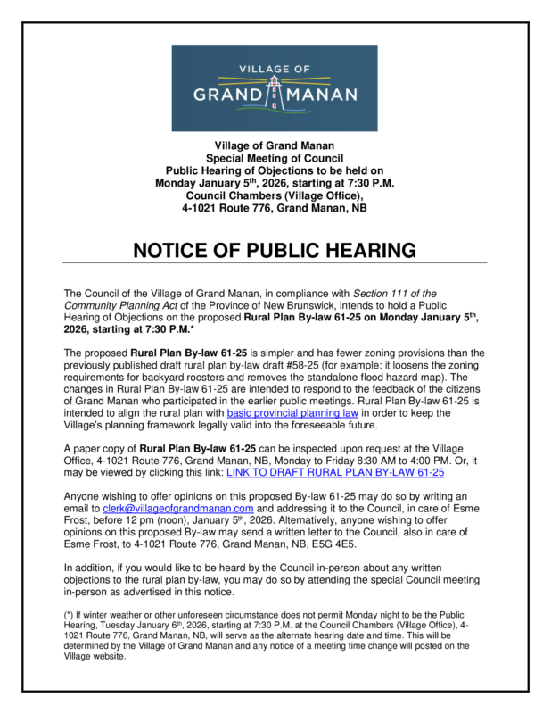The Village of Grand Manan is developing a new Rural Plan and would like to hear from you!